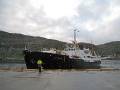 На самом деле это не паром, а круизный лайнер компании "Hurtigruten", который ходит вдоль всего побережья Норвегии из Киркенеса до Бергена, весь маршрут в одну сторону - 6 дней. Нам предстояло проплыть одну "остановку" до Honningsvag'а, 2,5 часа с 3-30 до 6 утра (лайнер отправляется раз в сутки; расписание мы узнали из отчета Бекетова и уточнили в каком-то инфоцентре по пути). На борту нам предложили принять душ и выдали полотенца - видимо, это входит в стоимость. Билет стоит 200 крон с человека + 38 крон за велосипед. Все остальные паромы на нашем пути - автомобильные, они гораздо дешевле, и за велосипед платить не надо. В Kjollefjord'е единственный служащий делает все: и корабль швартует, и погрузку осуществляет.