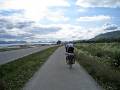 Дорога на Нордкап, состоящая из затяжных спусков-подъемов, считается очень тяжелой для велосипедистов ("Вы на Нордкап? Оооо... Ну удачи вам" и т.п.). Пешком я, конечно, не шла, как предсказывал мурманский водила, но скорость падала до 7-8 км/ч. Самый крутой участок - в начале: 3 км вверх с уклоном 9%. Но все равно после тяжелого дня накануне эта поездка была для нас отдыхом.