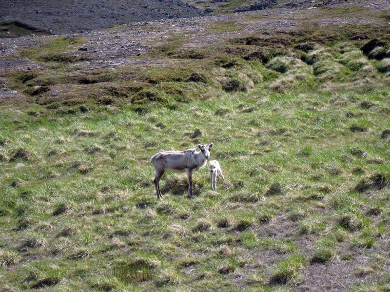 Олениха с олененком у дороги на Нордкап.