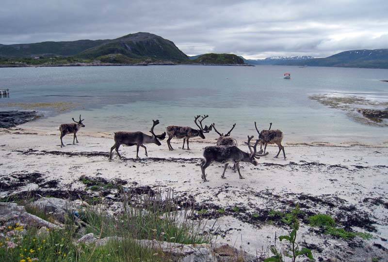 Hillesoy. Олени на берегу фьорда.