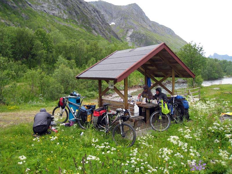 6 июля. Обедаем у озерца на въезде в поселок Gryllefjord.