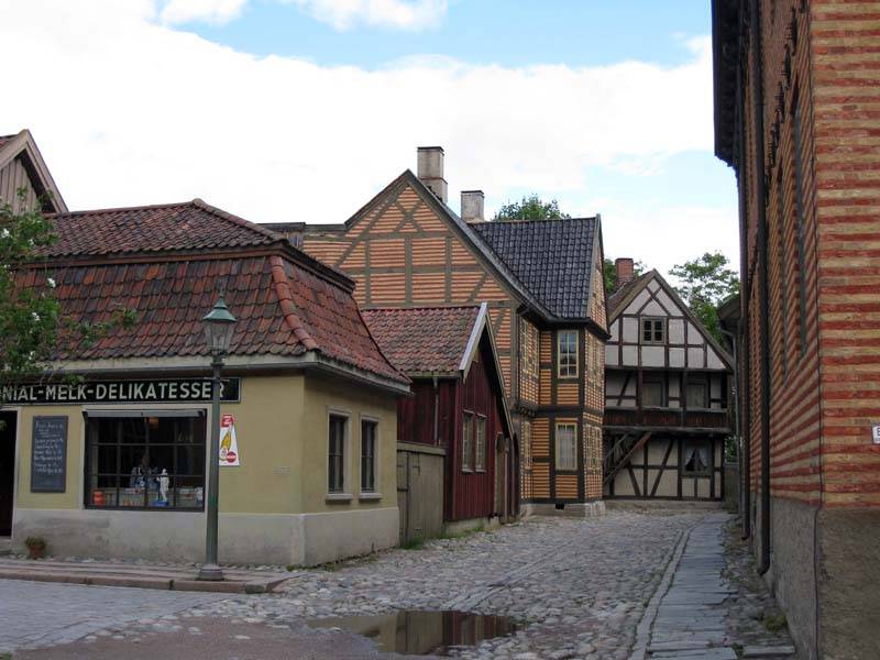 Norsk Folkemuseum. Слева - бутафорский магазин.