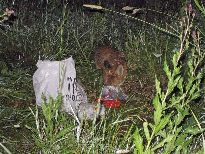 Ночь 11-12 июля. Пришла лисица, проковыряла банку со сметаной и все сожрала.