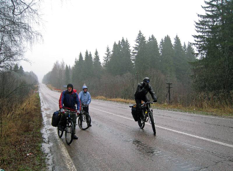 Вылезли на асфальт. Из-за дождя сливается в Румянцево на электричку.