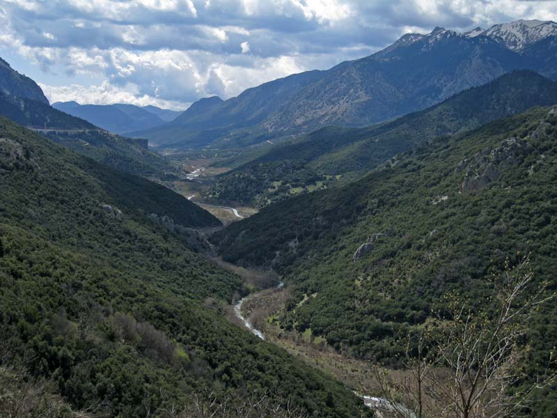 Долина реки, впадающей в озеро Limni Mornou с севера.