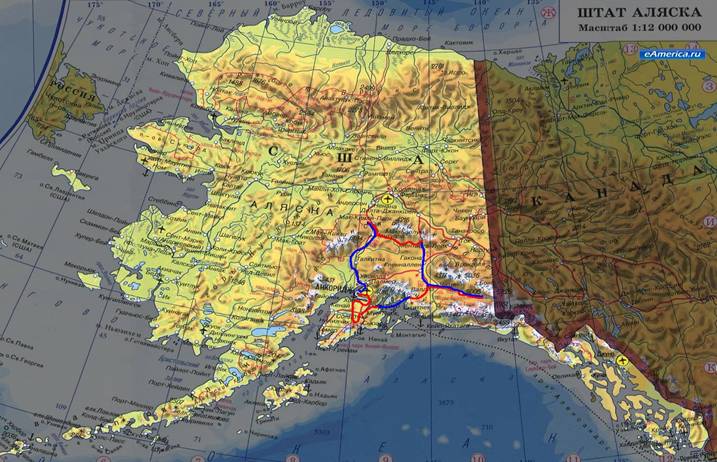 Highway - Cantwell - (Parks Highway) - Denali National Park - (автобус) - Anchorage.