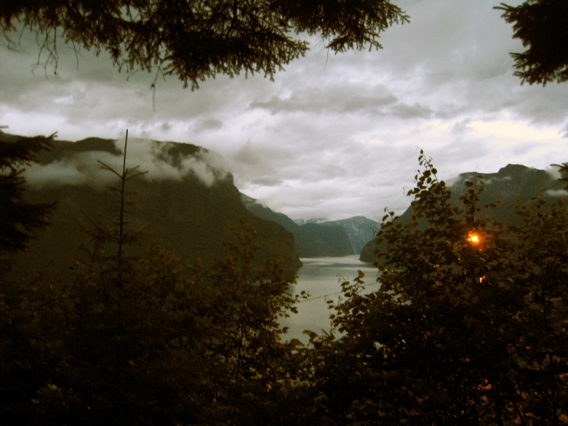 Вечер 17 июля. Ночевка с видом на Aurlandsfjorden. Еле нашли место между витками серпантина.