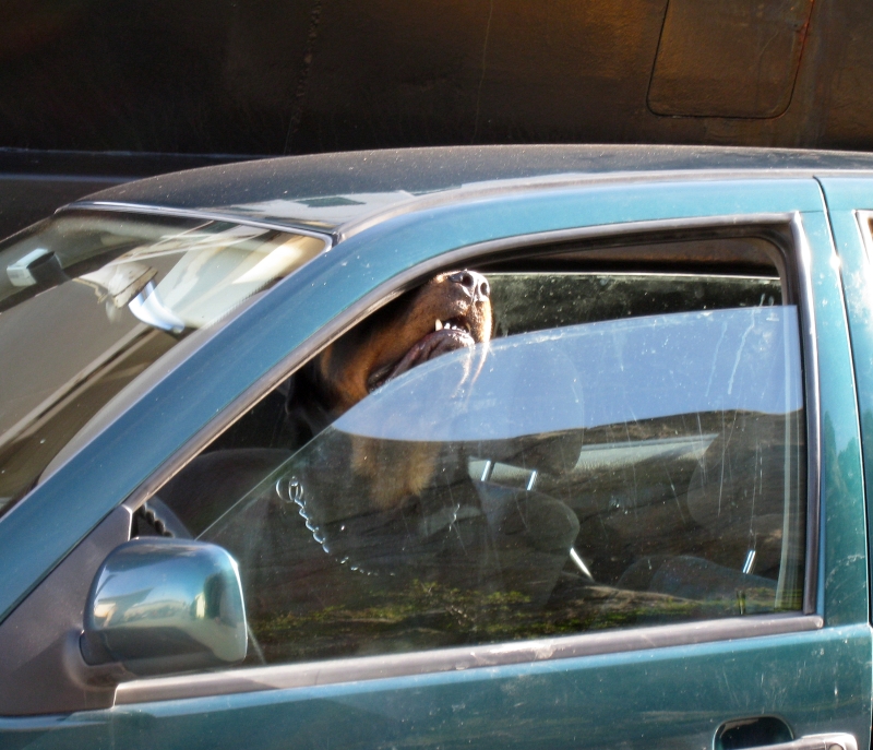 Собачка в машине тоже ждет паром.