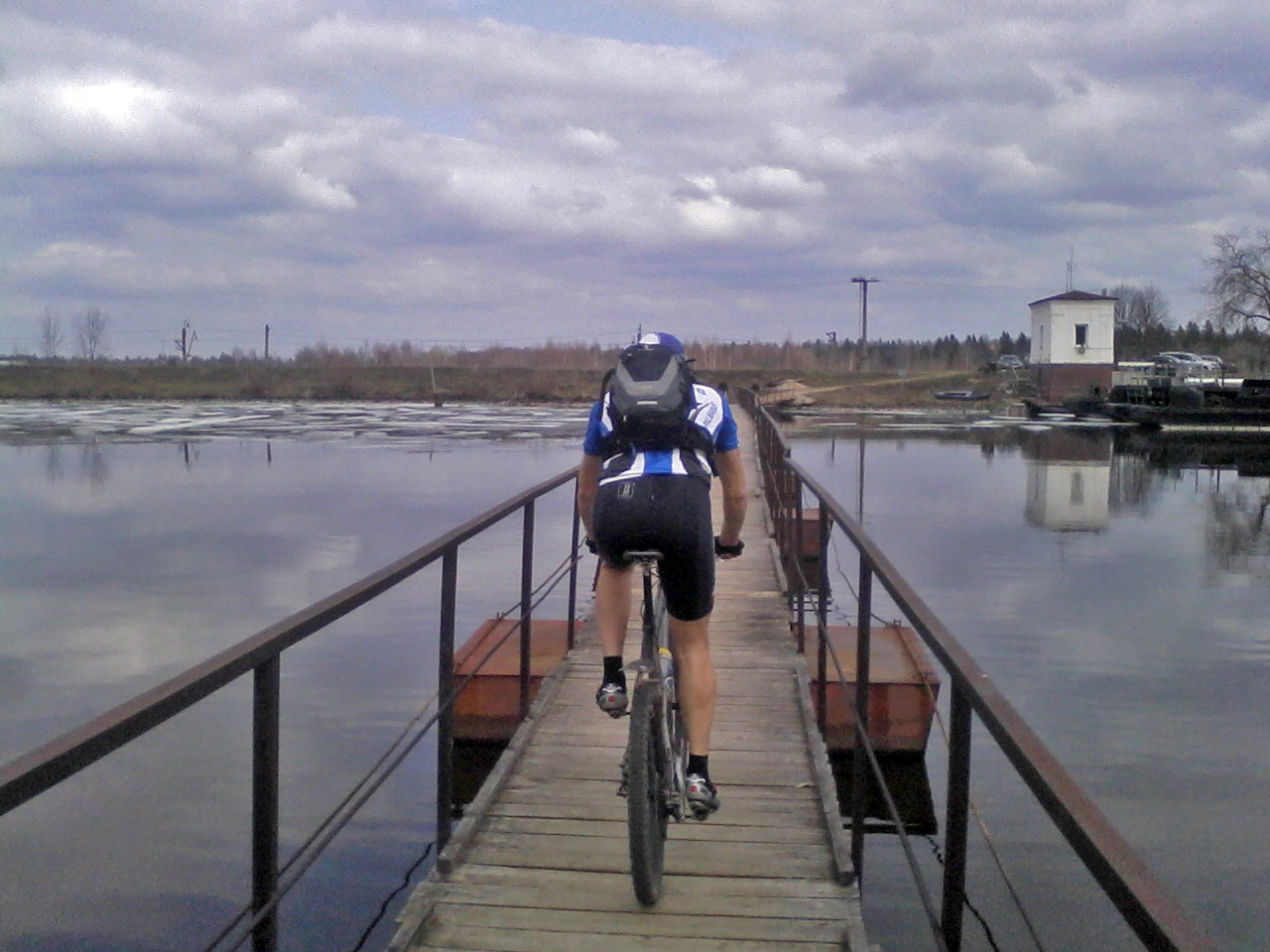 Мельдино. Вместо парома через канал - пешеходный понтонный мост.