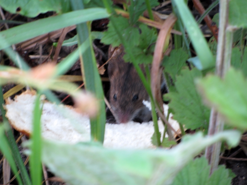 Вечер 11 июня. Покормили мышку булкой.
