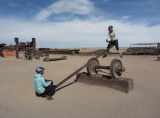 27 сент., Уюни. Едем через свалку к музею паровозов.
