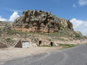 Скала с гротами у дороги в Капузбаши.