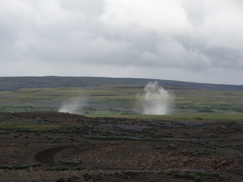 Водяную пыль над водопадом Gullfoss видно издалека.