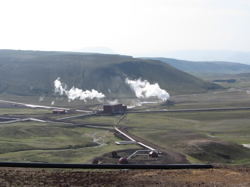 Внизу дымит геотермическая электростанция.