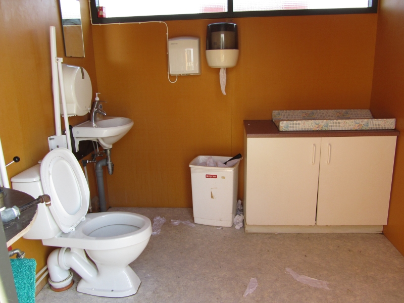 Туалет на автостоянке вблизи Крафлы. Есть даже пеленальный столик!