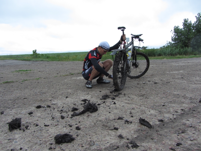 Пытаемся очистить велики от налипшего чернозема.