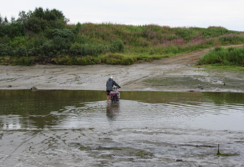 Брод через губу Печенга (отлив, поэтому вода ниже колена).