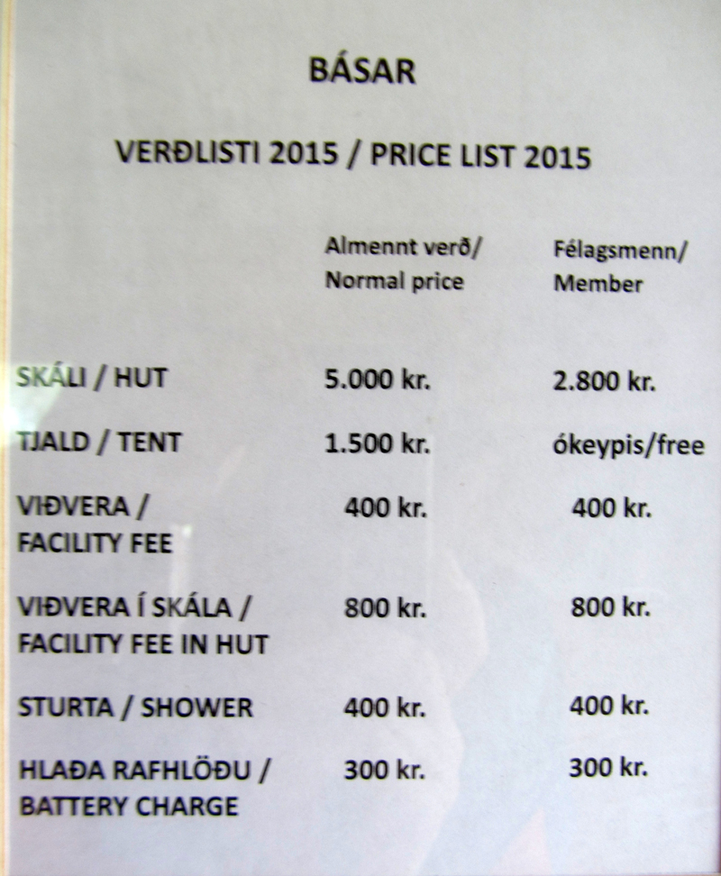 Thórsmörk. Расценки кемпинга Basar.