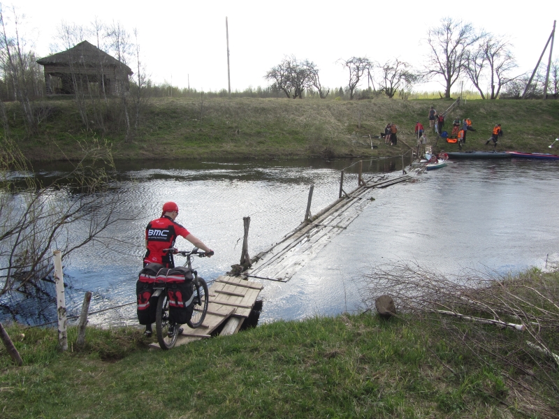 Селище, частично залитый подвесной мост через Ельшу, приток Межи.