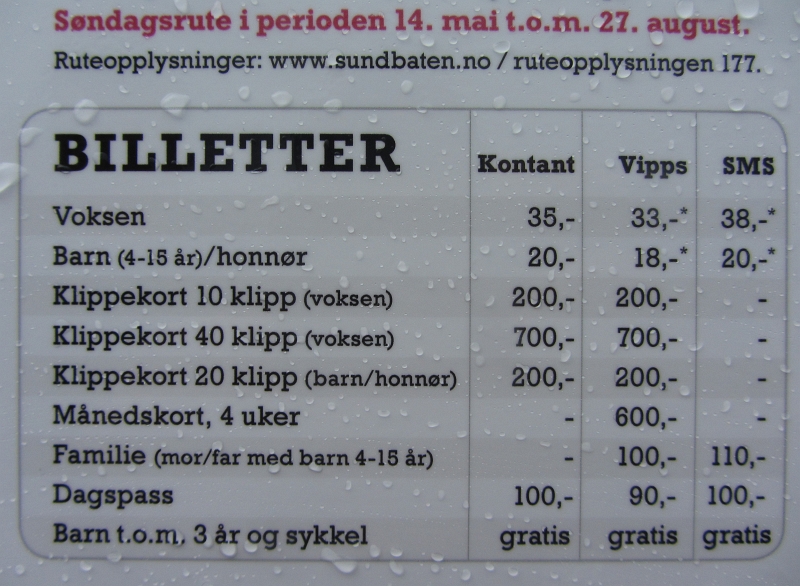 Расценки на проезд на прогулочном кораблике (harbour ferry) Sundbåten.