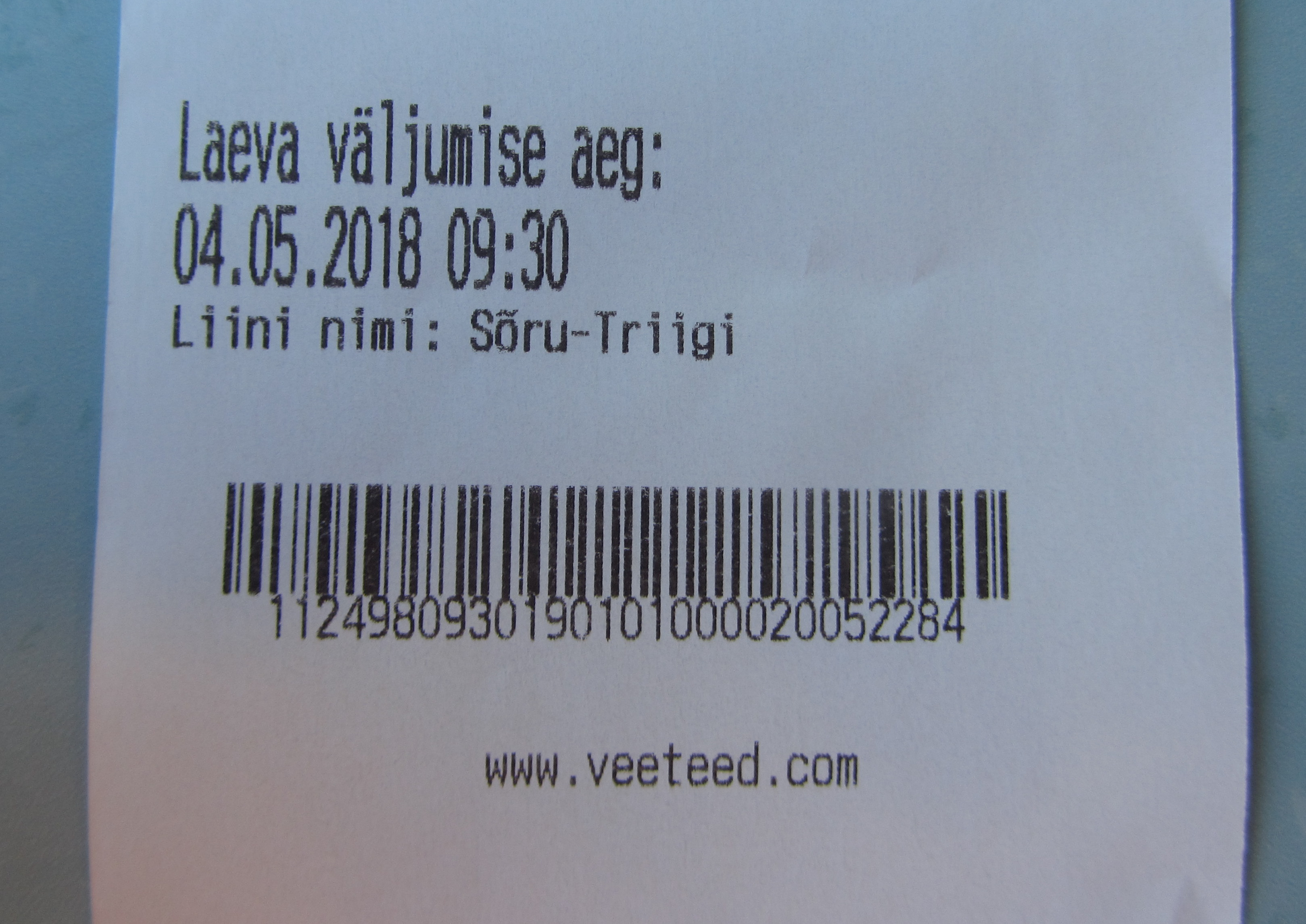 Билет на паром из порта Трийги (Triigi, остров Сааремаа) в порт Сору (Soru, остров Хийумаа).