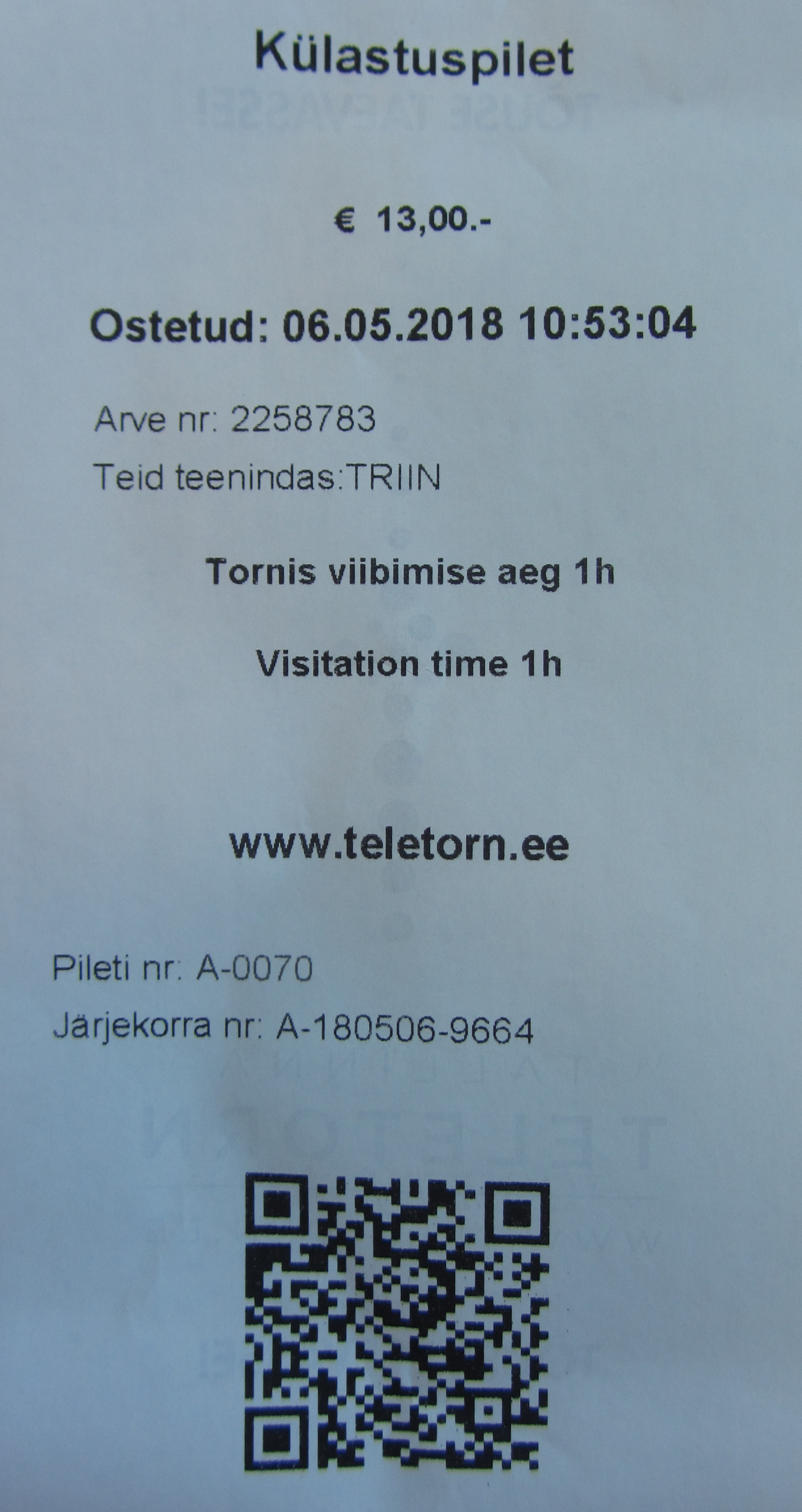 Билет на посещение Телебашни.