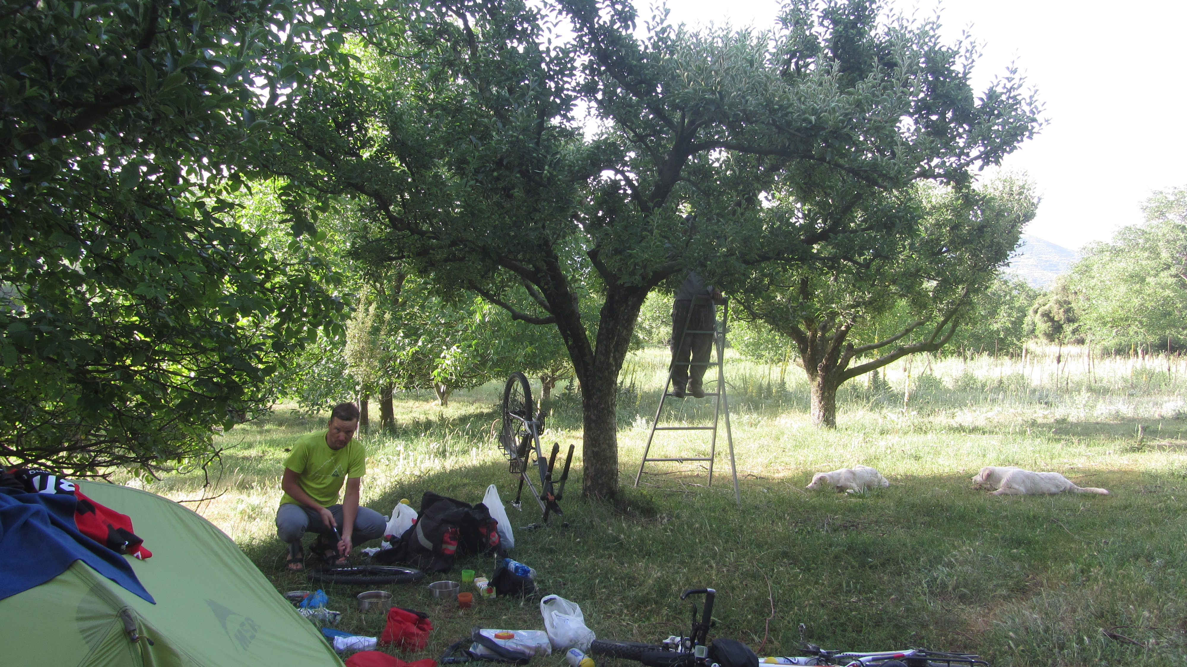 Утром пришёл местный мужик, попросил вернуть ему лестницу и стал обрывать плоды с дерева, бросая на землю.
