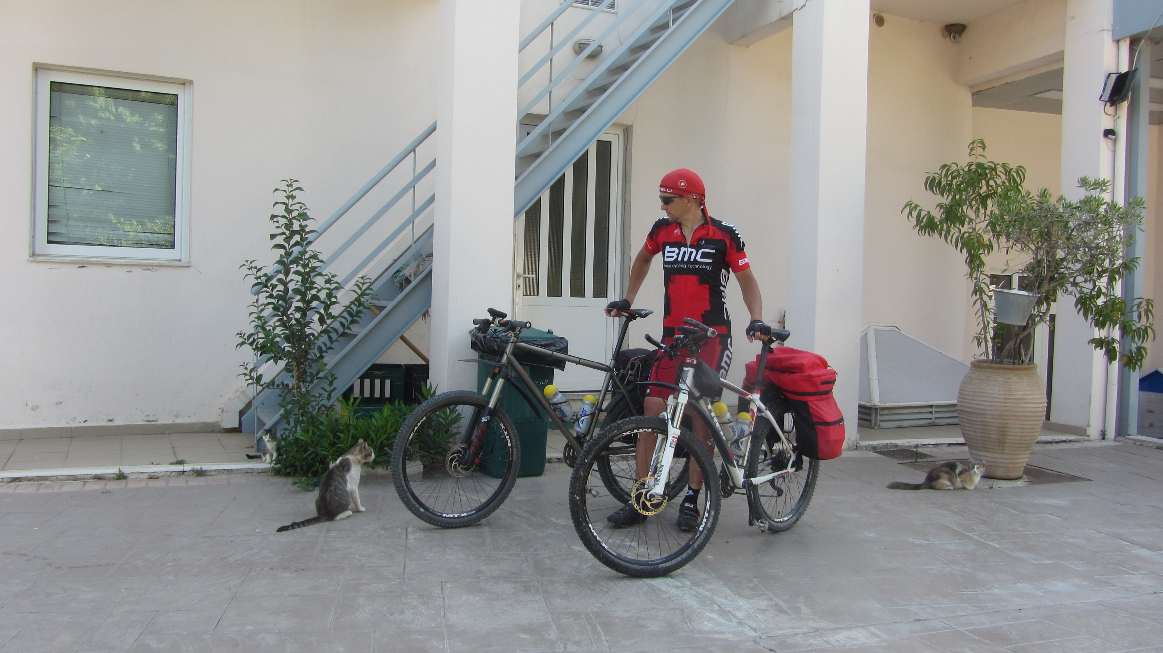 Киллини. В окружении котов на заднем дворе отеля Glarentza.