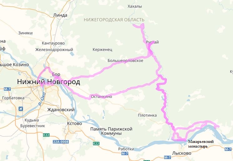Нижегородская область Нижний Новгород – (р.Керженец) - Рустай – (р.Керженец) - (р.Волга) – Макарьево - (р.Керженец) – Бор - (канатная дорога через Волгу) - Нижний Новгород. 446 км (150 + 9 + 101 + 102 + 84), включая 3,6 км по канатке. Трек и точки (файлы .gpx для скачивания) Трек и точки nakarte |