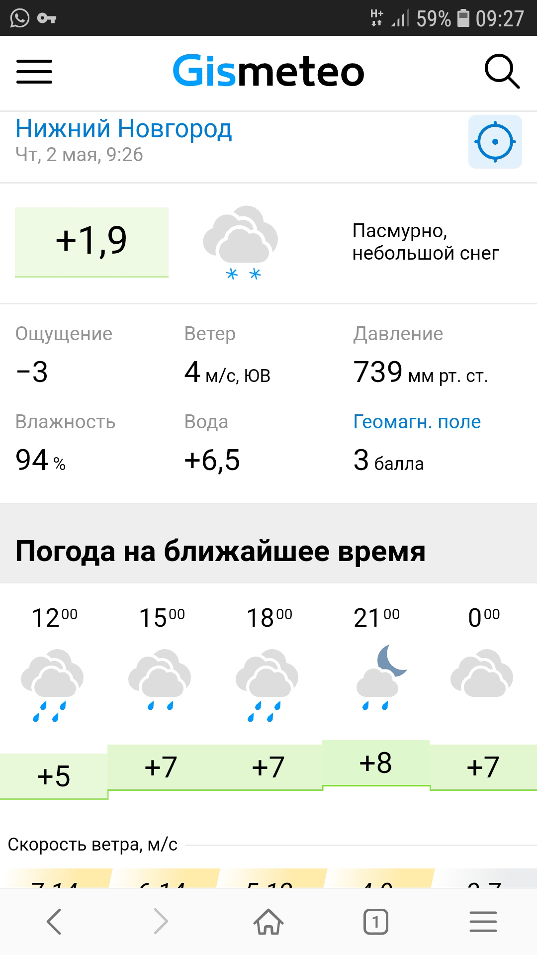 Погода в Нижнем Новгороде: +1,9 и снег.