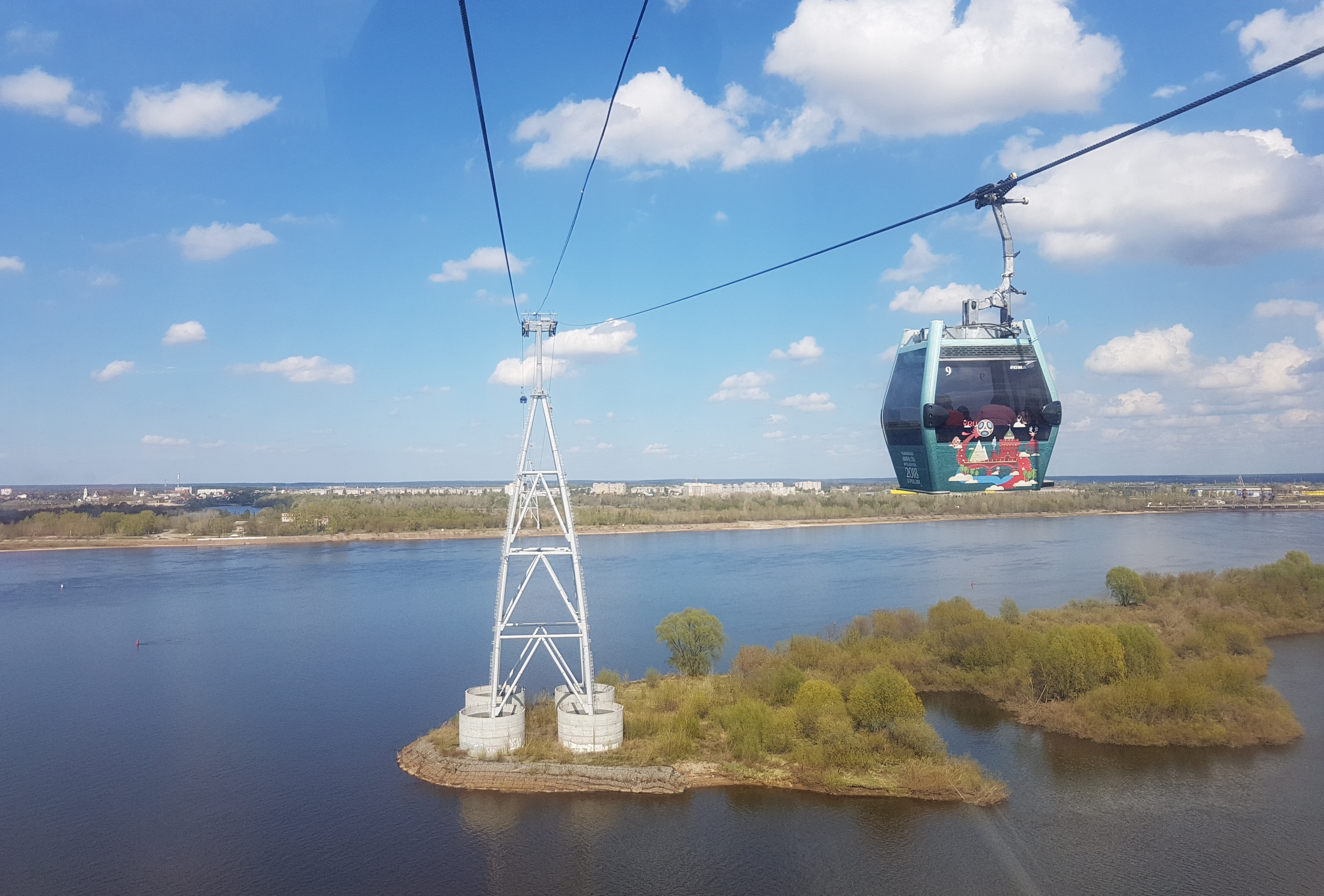 Вагончики пересекают Волгу за 12 минут, развивая скорость до 22 километров в час.