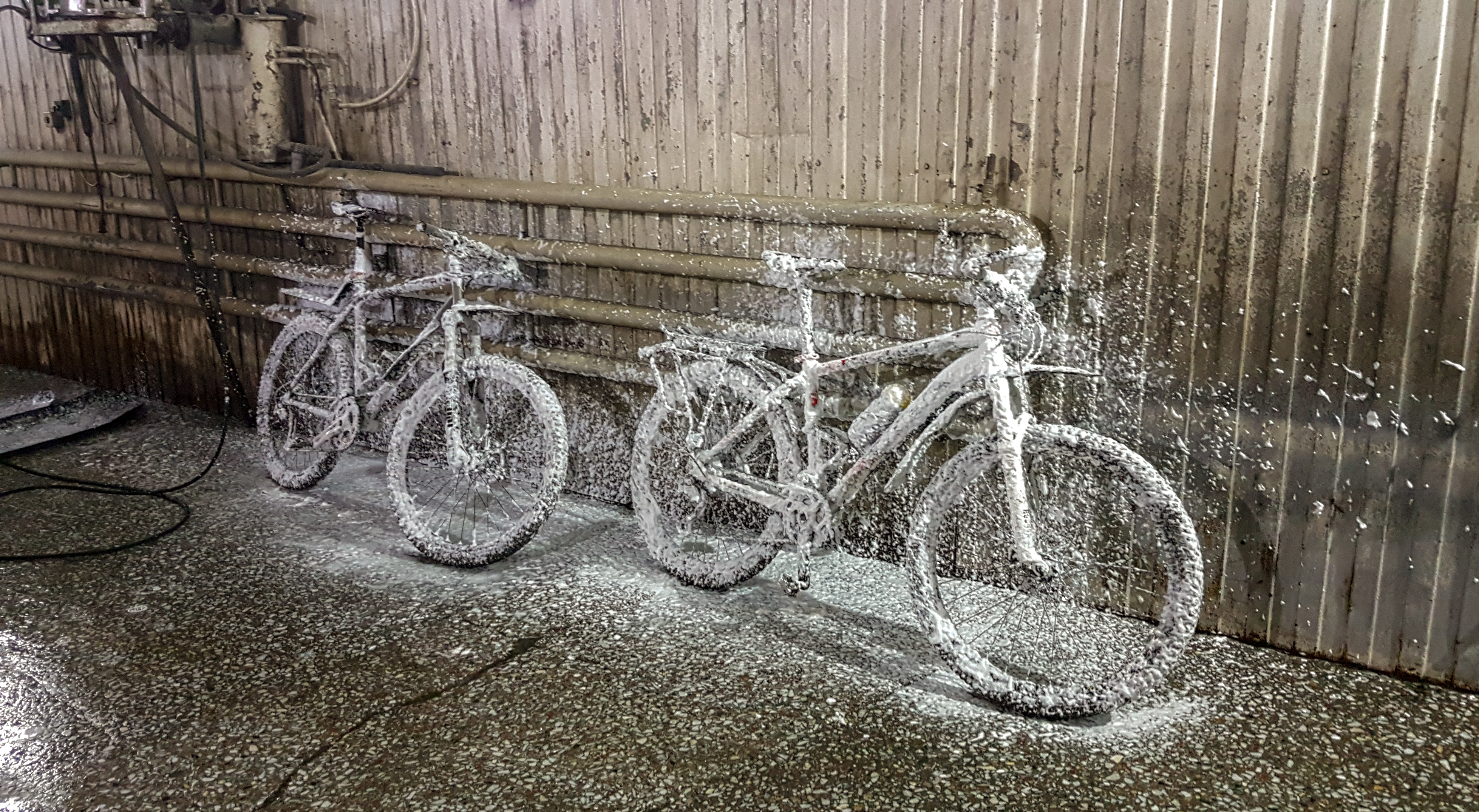 Байки на автомойке около дома.