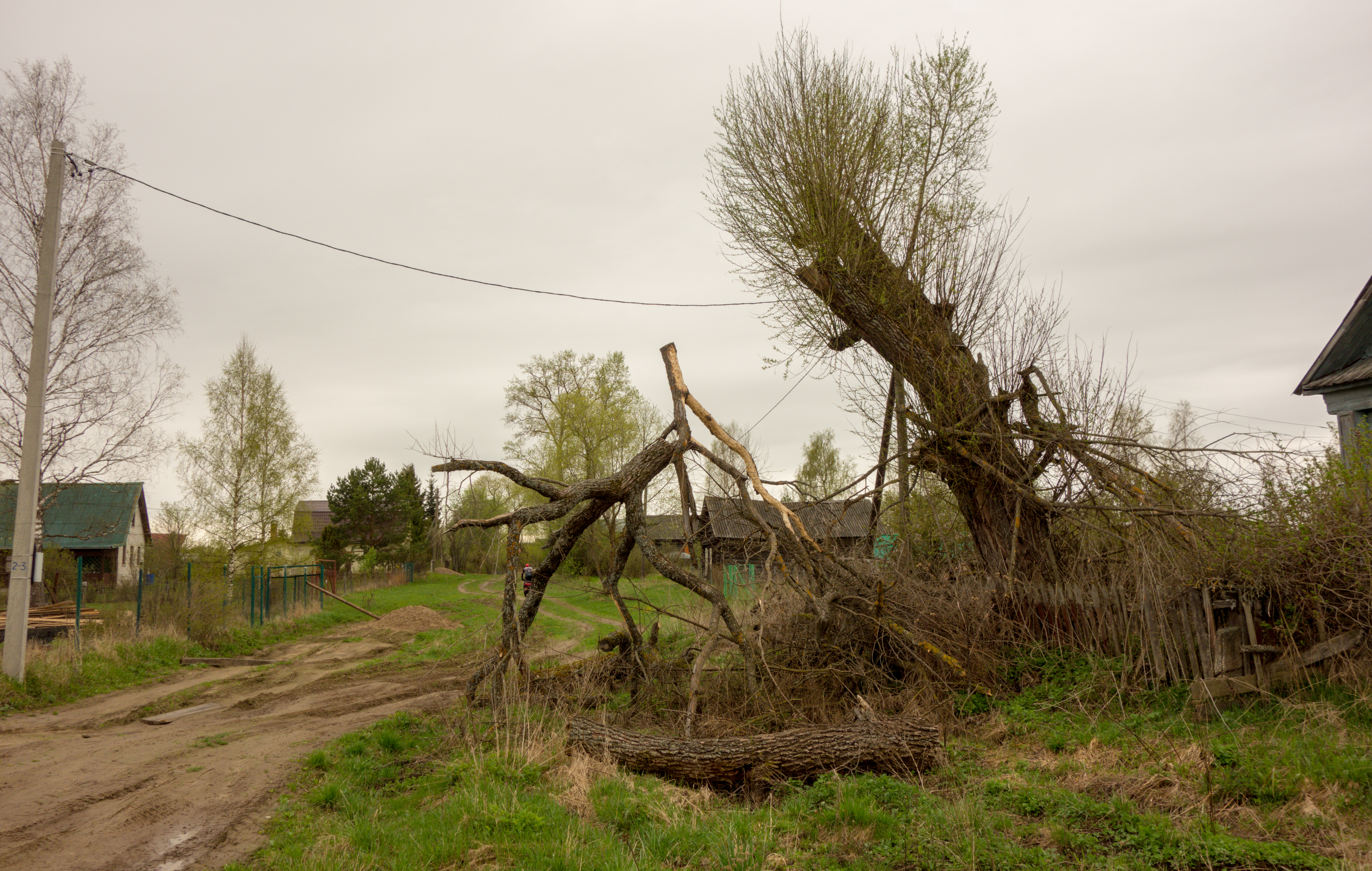 Деревня Буково вблизи Итлари. Обломок дерева пытается укорениться вверх тормашками :-)