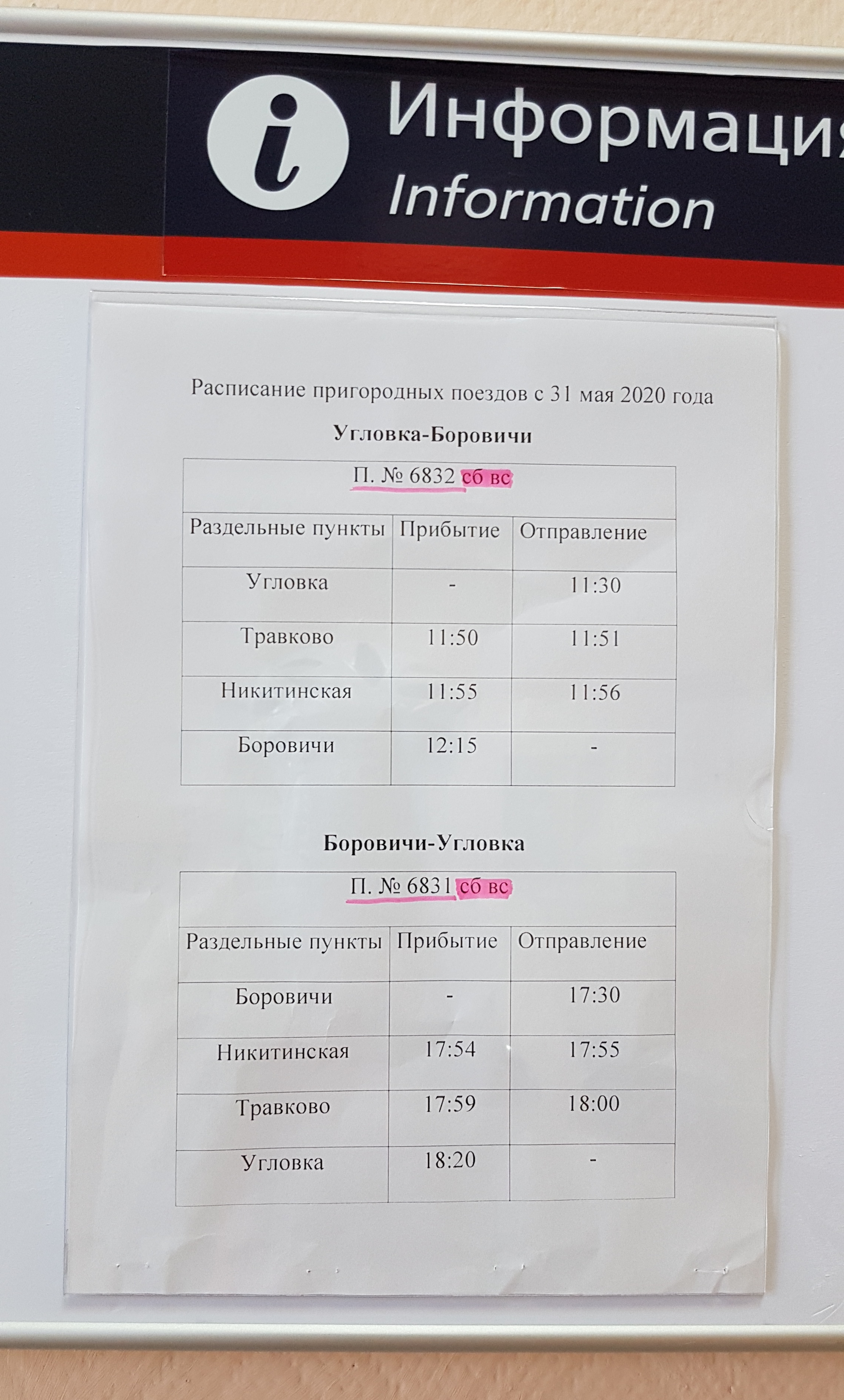 Расписание поезда Боровичи - Угловка.