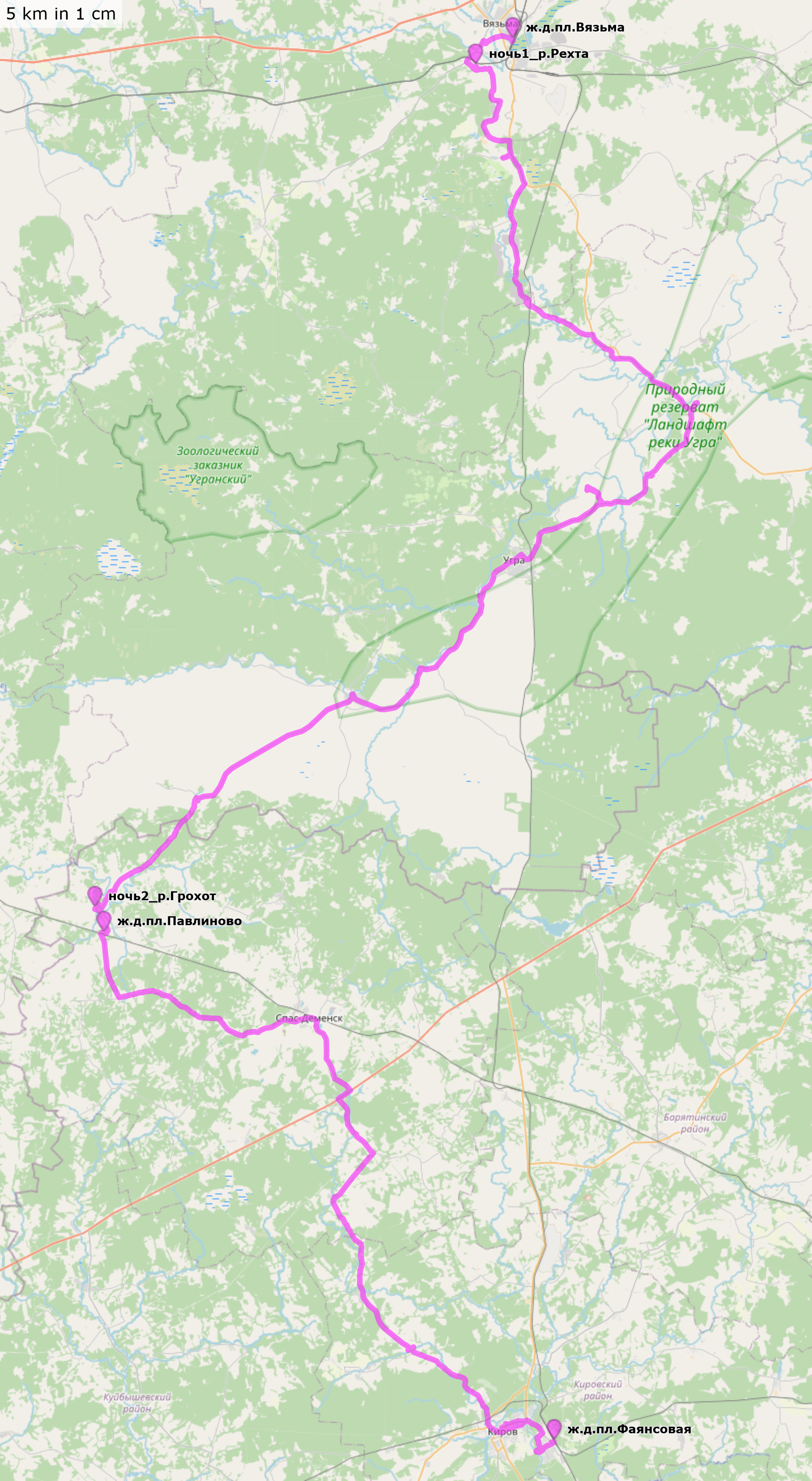 11-13 сентября 2020Смоленская и Калужская области Вязьма - р.Рехта (ночёвка) - р.Угра - р.Грохот (ночёвка) - Павлиново - Спаск-Деменск - Киров (ст.Фаянсовая) Треки и точки nakarte Трек и точки (файлы .gpx для скачивания, 7+141+95 км) Трек и отчет в Strava |