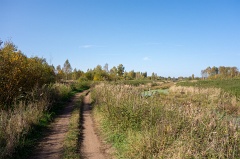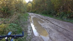 Гагаринская Новосёлка - Яропольцы. Год назад, после дождей, на этой дороге на всём протяжении была непролазная грязь, а сейчас - только местами. Кое-где можно обойти по кустам.