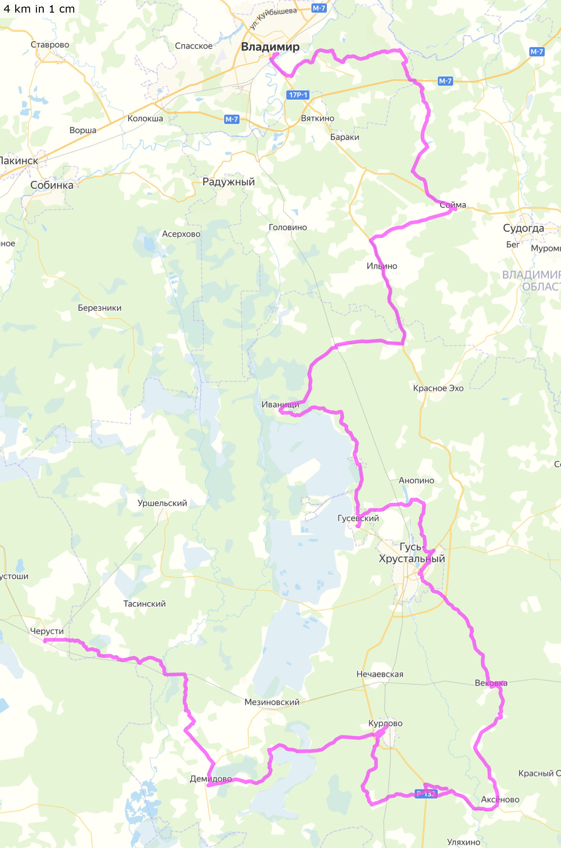 7-8 ноября 2020Владимирская и кусочек Московской области Владимир - Сойма - Ильино - Иванищи - Гусевский - Гусь-Хрустальный (ночёвка в гостинице) - Вековка - Аксёново - Курлово - Демидово - Черусти Трек и точки (файлы .gpx для скачивания, 125+135 км) Трек и точки nakarte Трек и отчёт в Strava Несколько фото в моём ФБ |