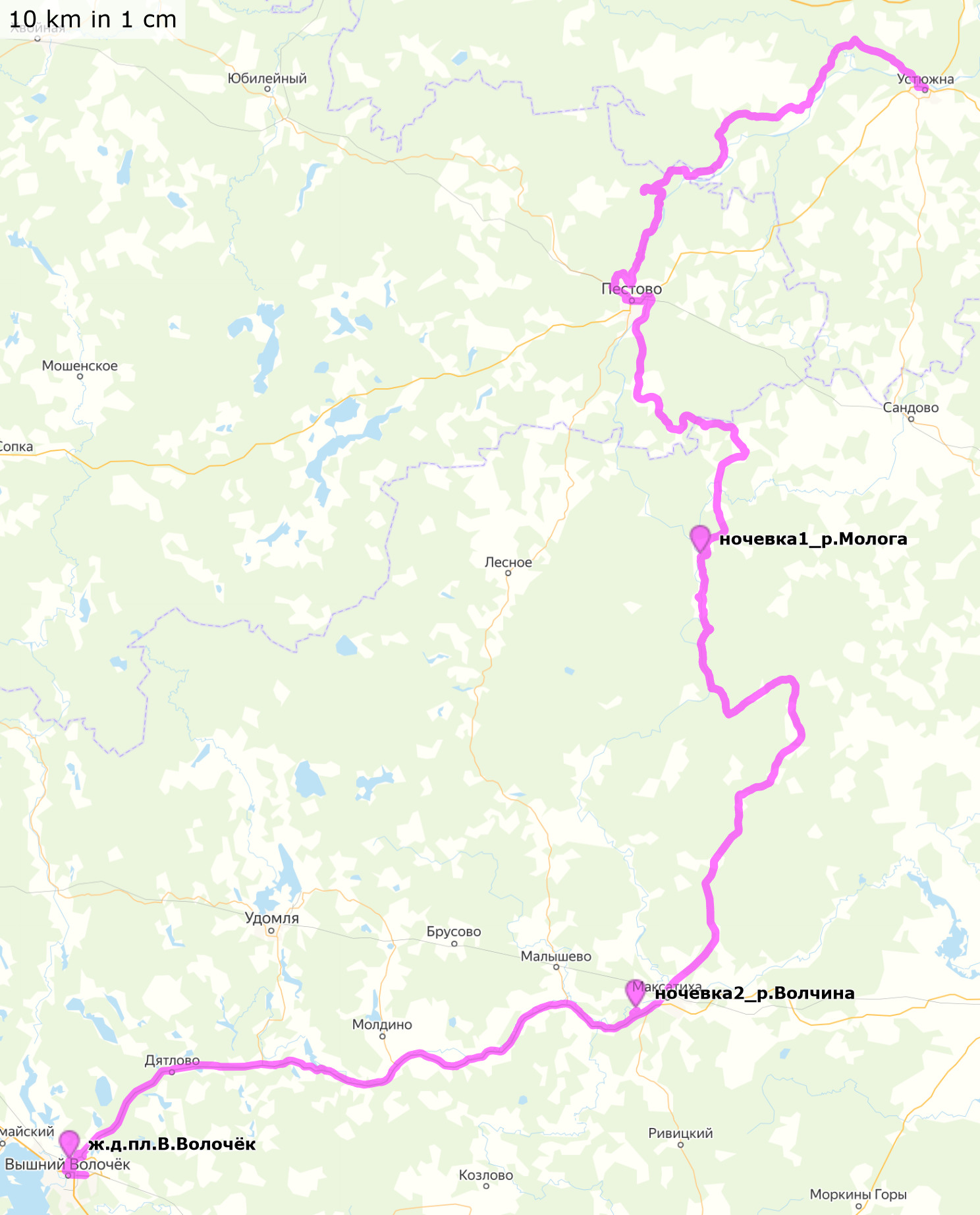 1-3 мая 2021Вологодская, Новгородская и Тверская области Устюжна - Пестово - река Молога (ночевка 1) - Борисовское - Максатиха - река Волчина (ночевка 2) - Вышний Волочёк Трек и точки (файлы .gpx для скачивания, 138+95+102 км) Трек и точки nakarte Трек и отчет в Strava Некоторые фото в моем ФБ |