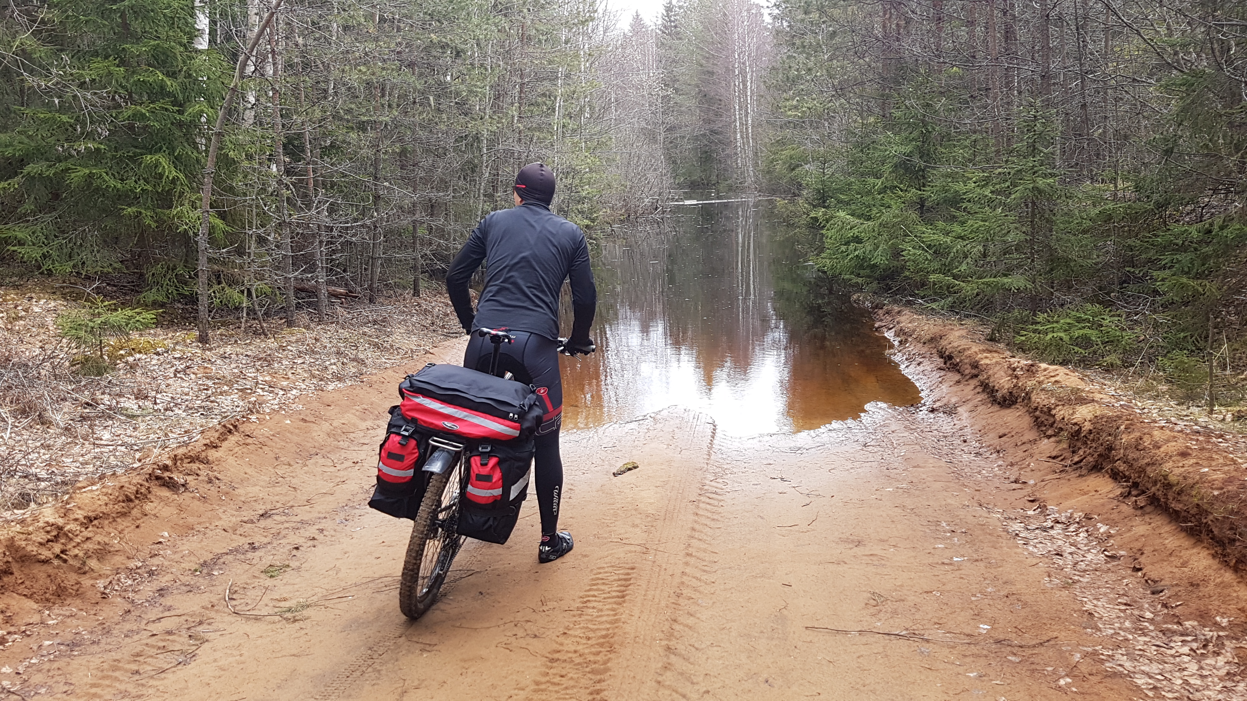 Залитая дорога перед мостом через реку Колодню.