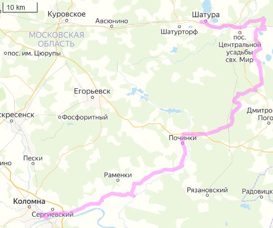 Коломна (ст.Голутвин) - р.Цна - Кривандино - Шатура