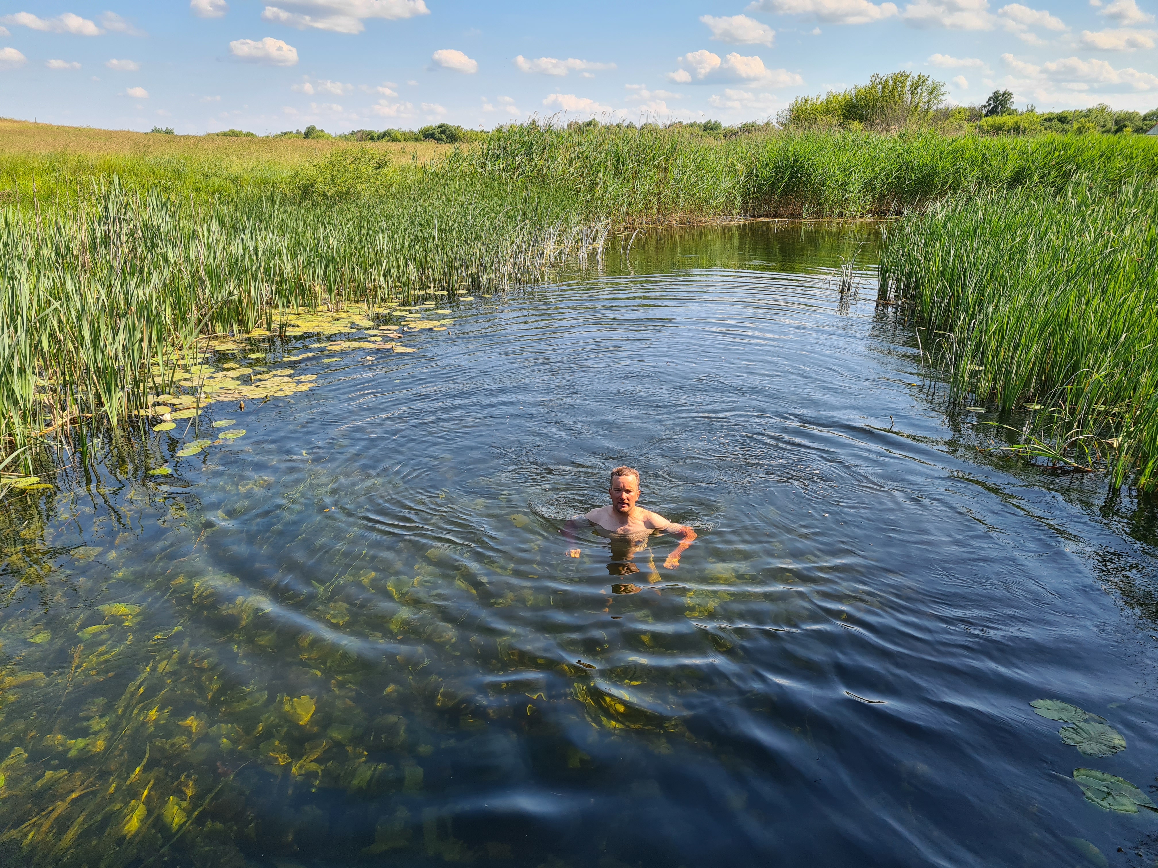 Купание в Битюге в Старом Эртиле около автомобильного моста.