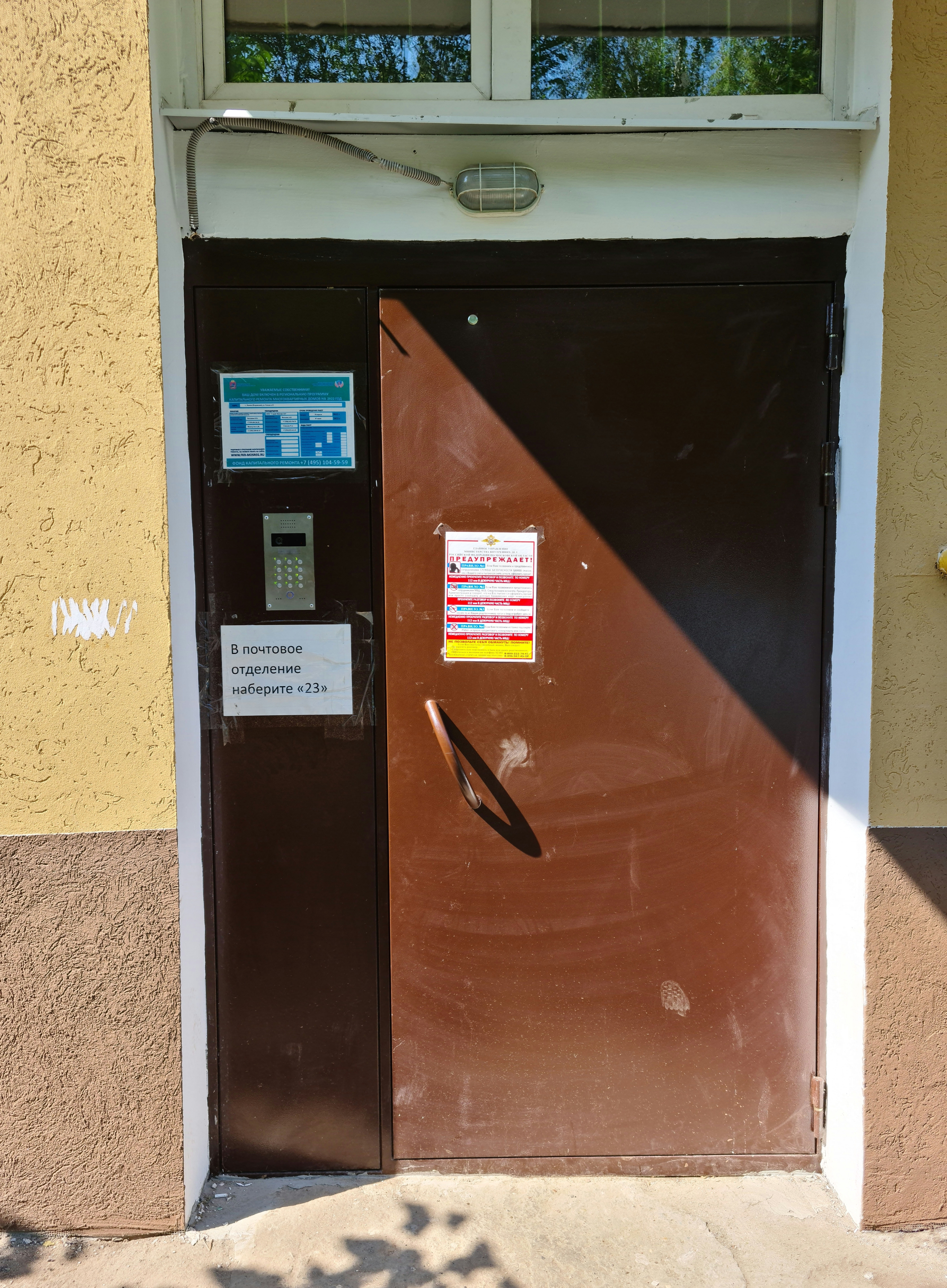 Почта в Лосино-Петровском, улица Гоголя. Дверь в подъезд.