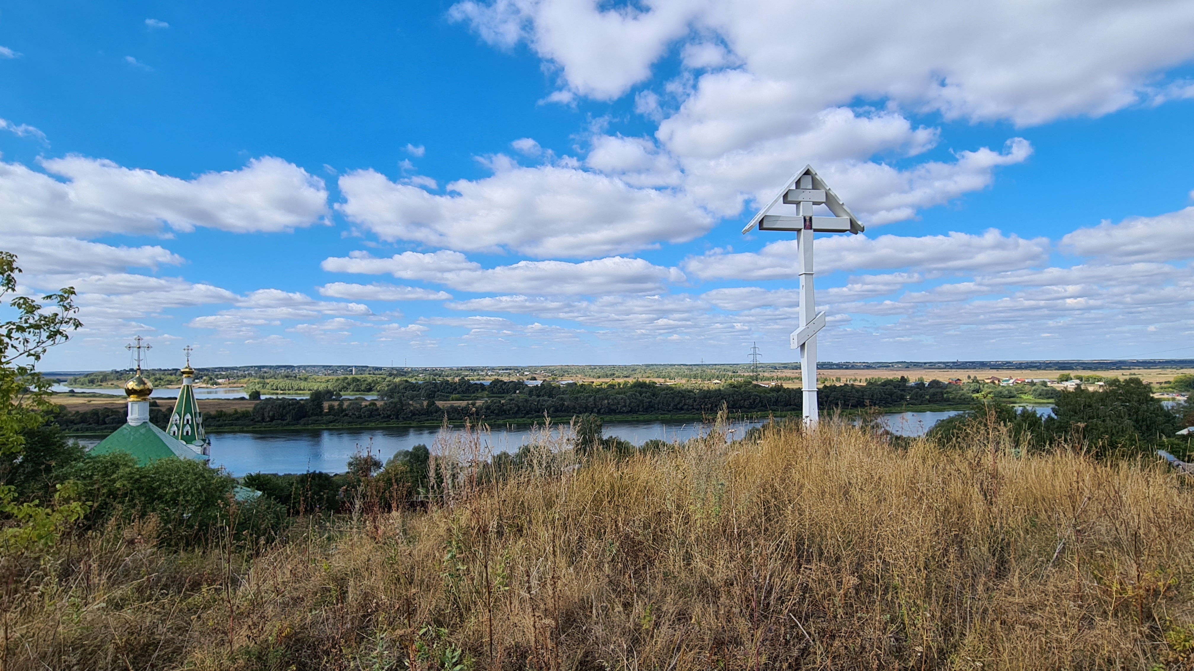 Старая Рязань. Кресть на горе на кладбище. Видна Преображенская церковь.