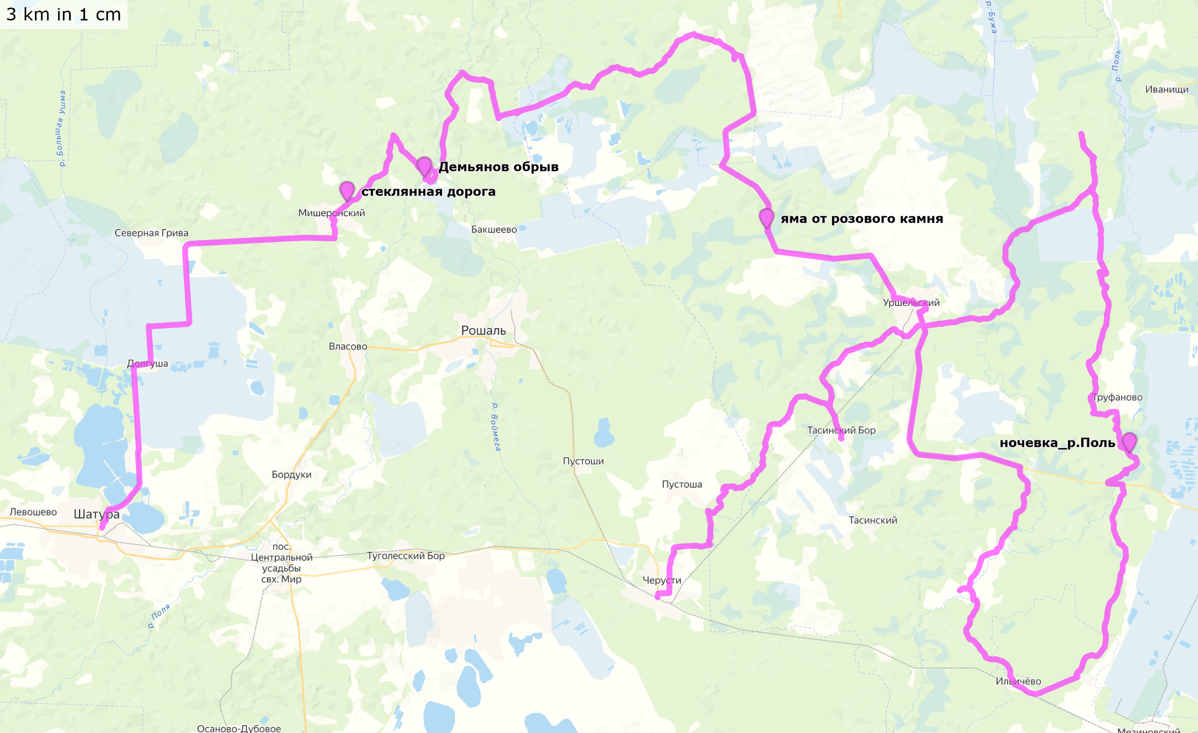 Московская и Владимирская области Шатура – Долгуша - Мишеронский - река Поль - озеро Смердячье - Уршельский - Ильичёво - река Поль - Уршельский - Тасинский Бор - Черусти. Трек и точки (файлы .gpx для скачивания, 134+68 км) Трек и точки nakarte Трек и отчет в Strava |