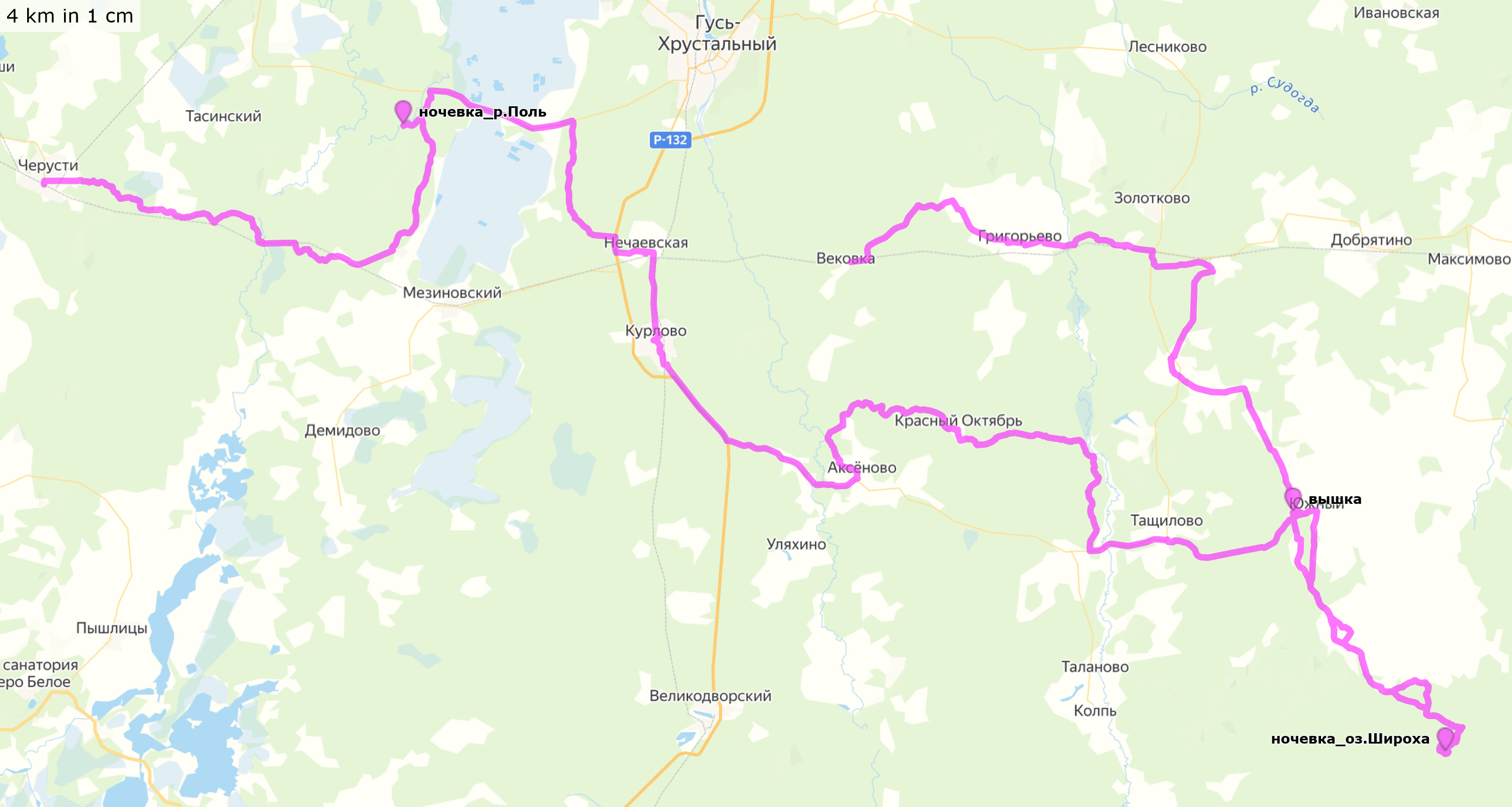 Кусочек Московской и Владимирская области Черусти - Ильичево - река Поль - Нечаевская - Курлово - Аксеново - Красный Октябрь - Тащилово - Пичугино - озеро Широха - Южный - вышка вблизи Пичугино - Икшево - Григорьево - Вековка. Трек и точки (файлы .gpx для скачивания, 38+119+77 км) Трек и точки nakarte Трек и отчет в Strava Некоторые мои фото в моём ФБ |
