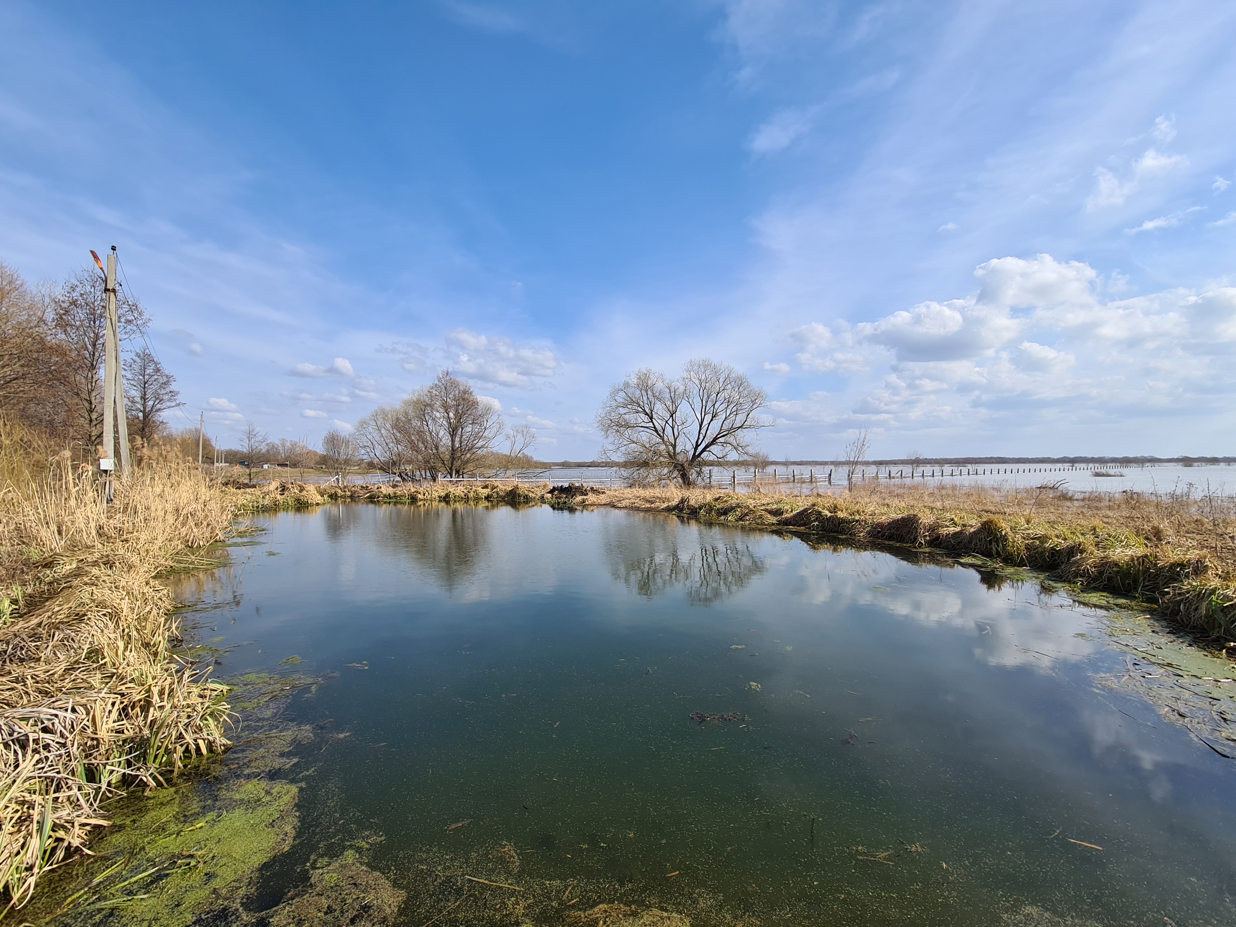 Поле около часовни залито талыми водами.