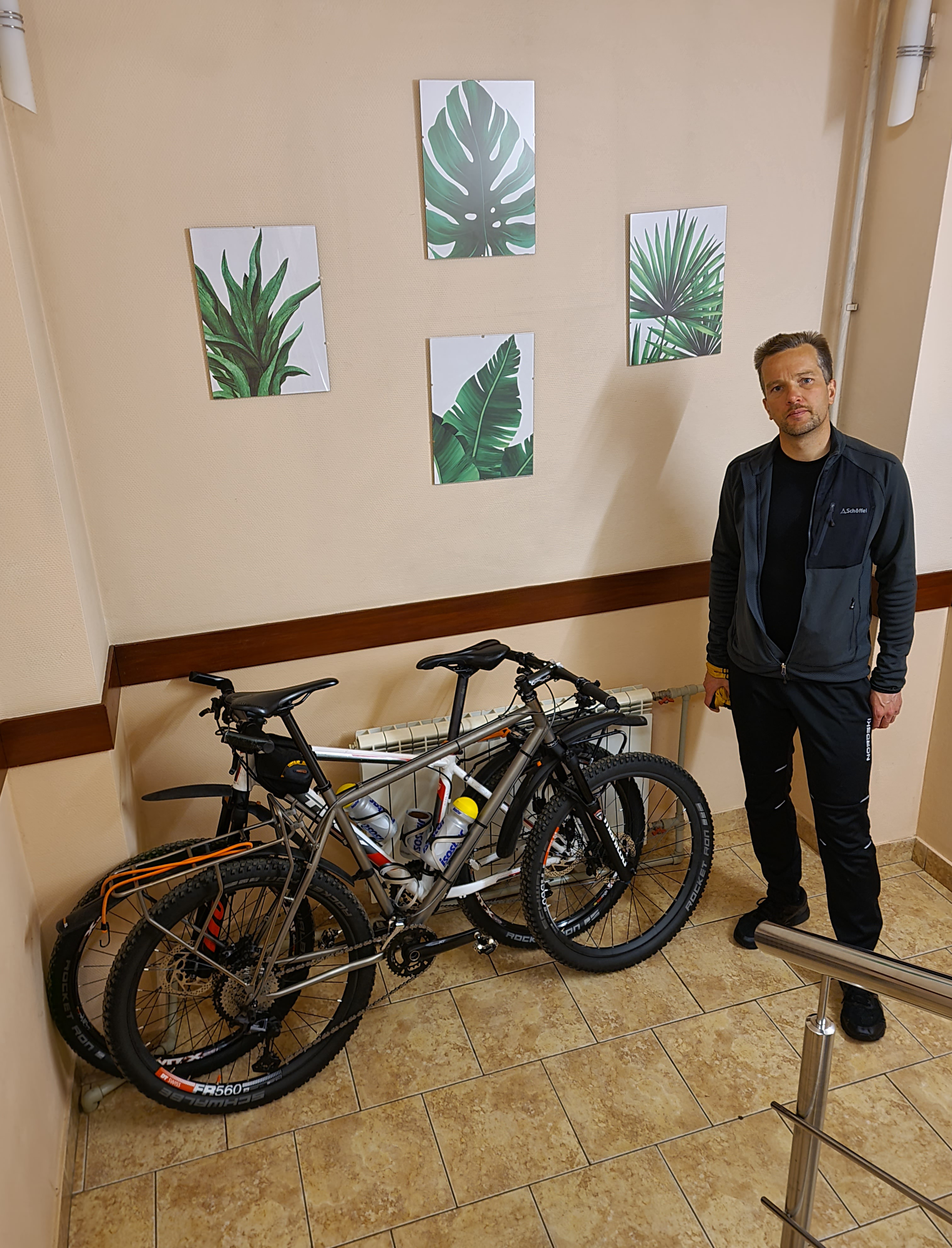 Байки поставили на лестничной площадке между 1 и 2 этажами.