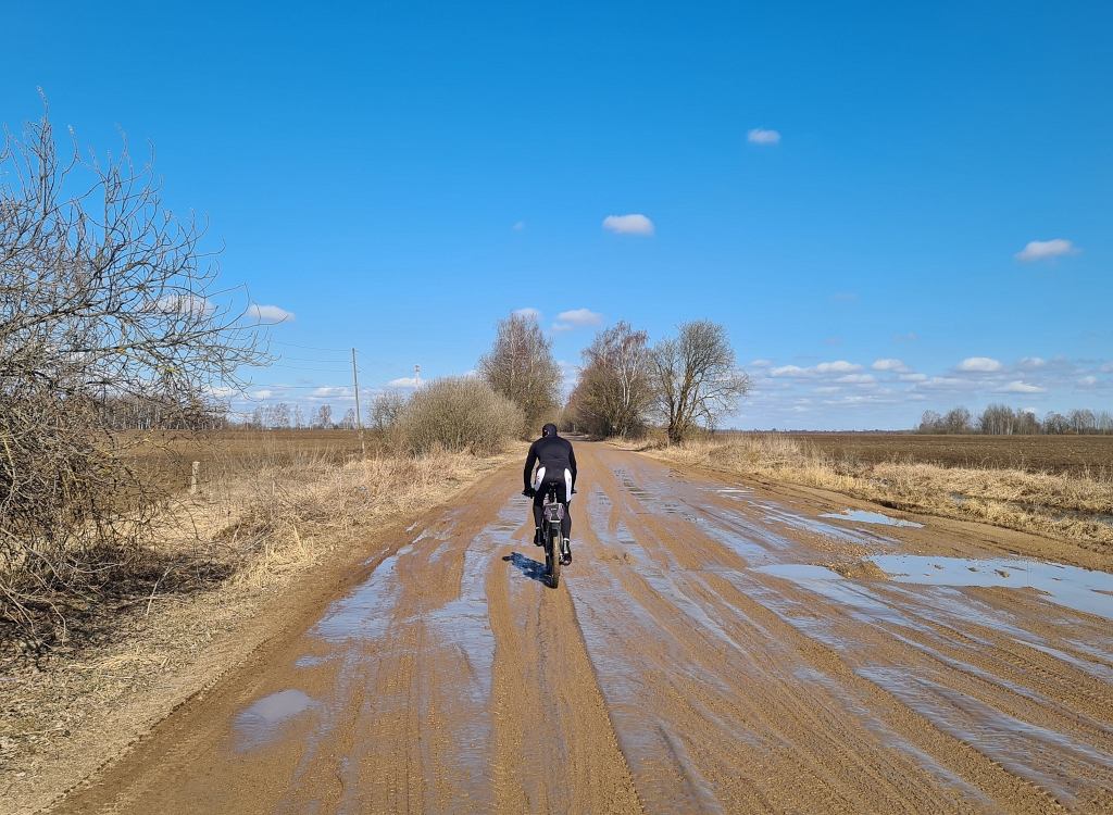 Грязный грейдер в Окаёмово с юга.