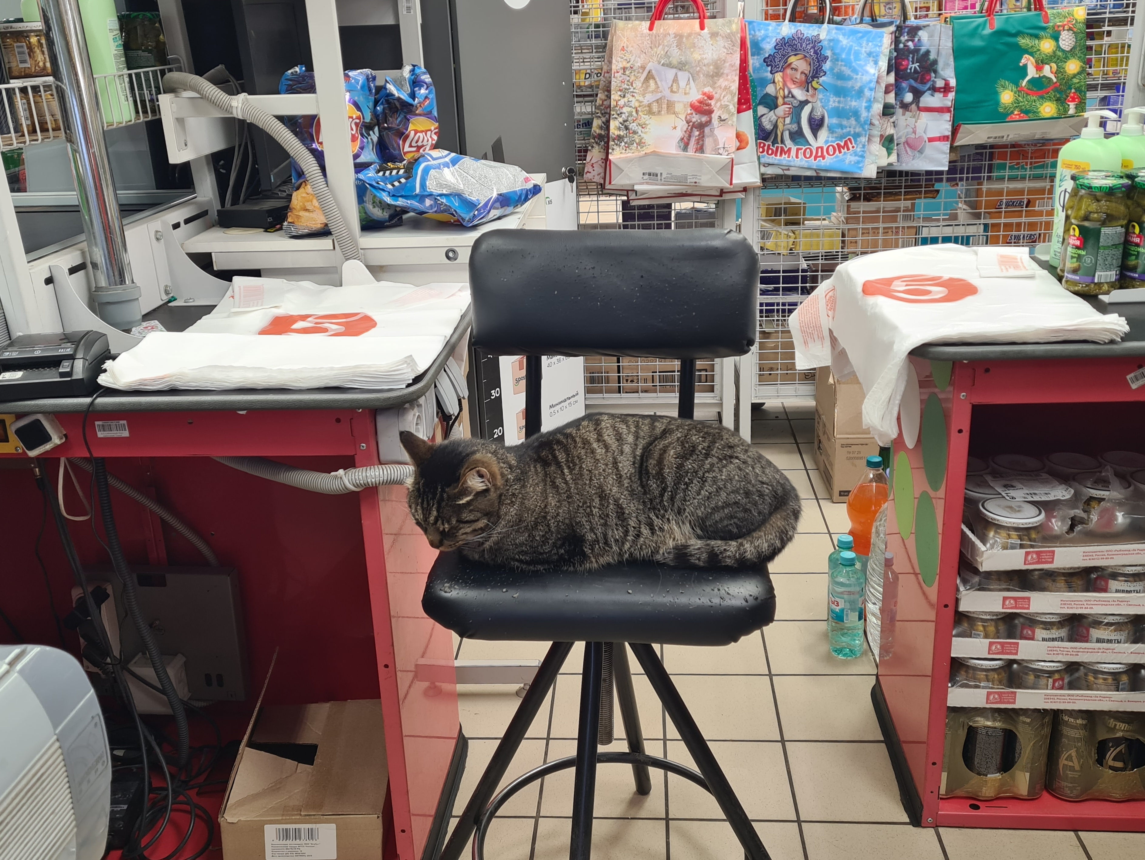 Кот в "Пятёрочке" в Мишеронском.