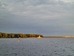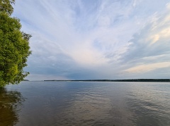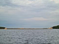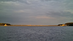 Видна дамба, разделяющая Пестовское и Учинское водохранилища. |